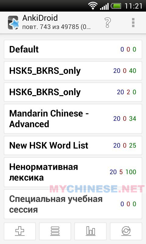 Готовые карточки (кит. яз.) можно скачать тут: https://ankiweb.net/shared/decks/chinese (импортировать в папку AnkiDroid на карте памяти)