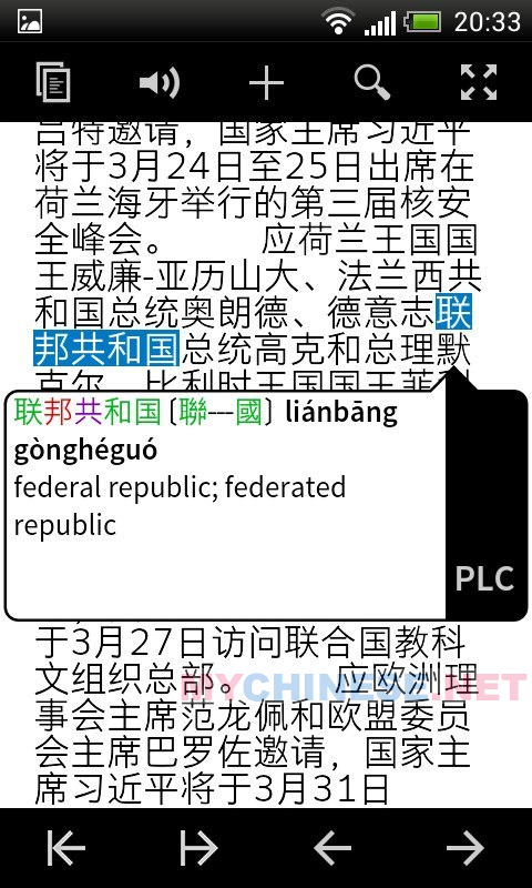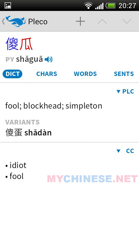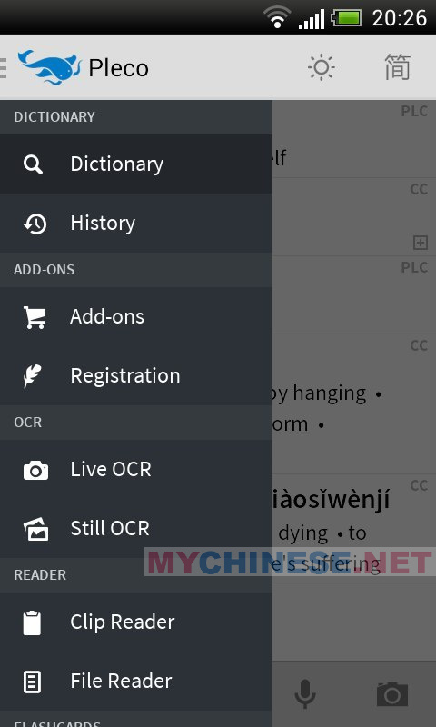 Начнём с пожалуй лучшего словаря для мобильных устройств — Pleco. Недостаток у него один — он англоязычный, и для эффективного использования требуется неплохой уровень английского. Теперь о преимуществах: