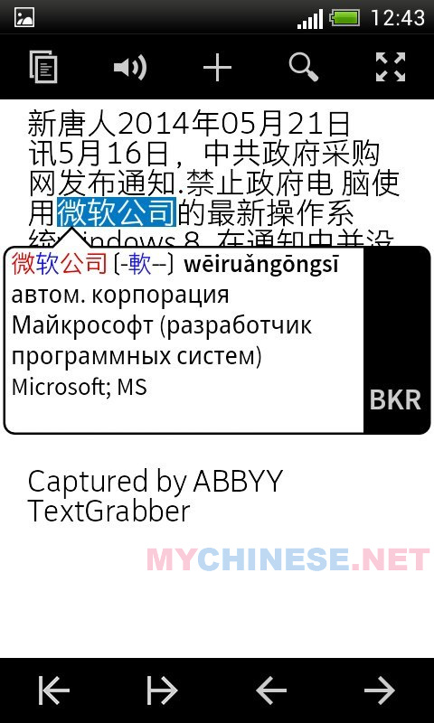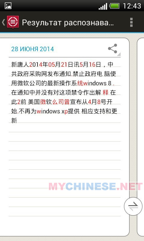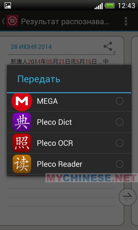 TextGrabber позволит мгновенно оцифровать и перенести любой печатный текст в ваш смартфон – достаточно лишь сфотографировать интересующий вас текст или его фрагмент. Полученный в электронном виде текст можно сразу же отредактировать, перевести, отправить по e-mail или SMS, а также скопировать или передать в другие приложения, установленные на вашем Android-устройстве — например читалку в Pleco — таким образом, переводить тексты и статьи вы будете значительно быстрее (привет студентам).